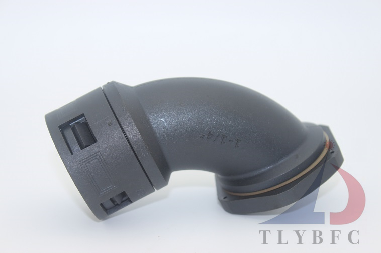 尼龍軟管接頭是各種管路連接中的主要組成部件,主要用于設(shè)備管路接口與軟管的管路連接,現(xiàn)有的設(shè)備管路進(jìn)口與接頭一般采用螺紋連接,安裝后方位角不能隨意改動(dòng),使得常備的直角或45度角標(biāo)準(zhǔn)管接頭無(wú)法用上;采用在螺紋上預(yù)涂膠水或包裹生料帶來(lái)進(jìn)行密封,長(zhǎng)期使用后螺紋松動(dòng)、生料帶老化,易導(dǎo)致泄漏;接頭與軟管多數(shù)是直管硬性插入,軟管在外力誤碰撞時(shí)容易拔脫,管路內(nèi)流體介質(zhì)壓力過(guò)大時(shí)也會(huì)把管子從接頭中沖出。汽車制動(dòng)系統(tǒng)人命關(guān)天,容不得絲毫差錯(cuò)、失誤。如何確保制動(dòng)管路連接牢靠、密封良好,本公司經(jīng)過(guò)潛心研究、反復(fù)試驗(yàn),終于有了新的突破,本案因此產(chǎn)生。